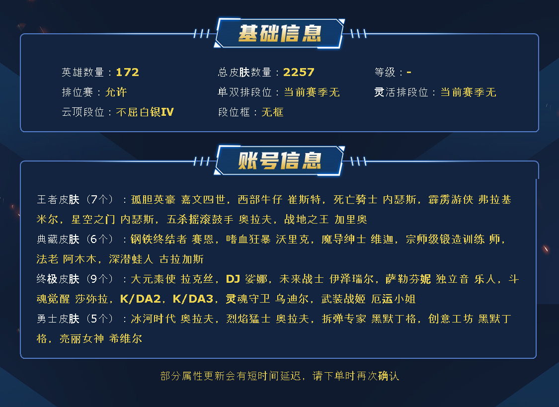 艾欧尼亚1518原皮丨圣堂佛耶戈莫甘娜丨不朽阿狸丨281限定丨91神话丨7终极丨714炫彩皮