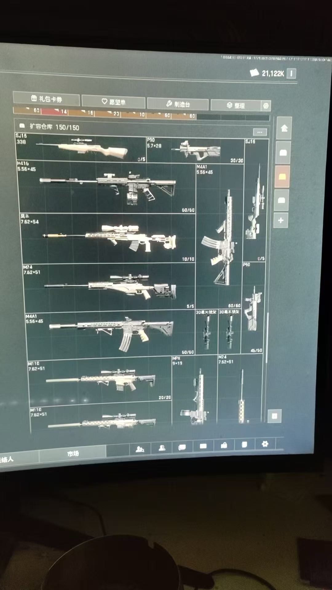 现金1500w/资产57m/有很多贵枪有3X3枪皮和人物皮肤/还有15个大红