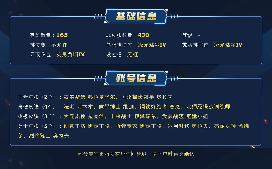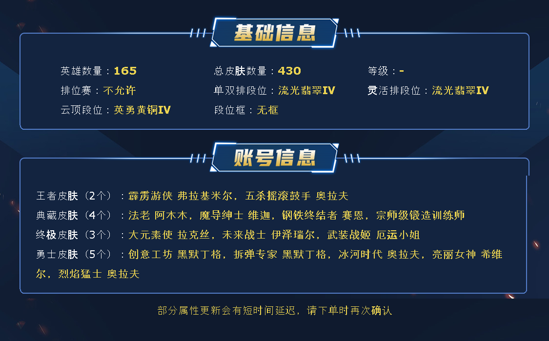 首页 > 英雄联盟 > /联盟五区 /无畏先锋 > 商品编号:465116