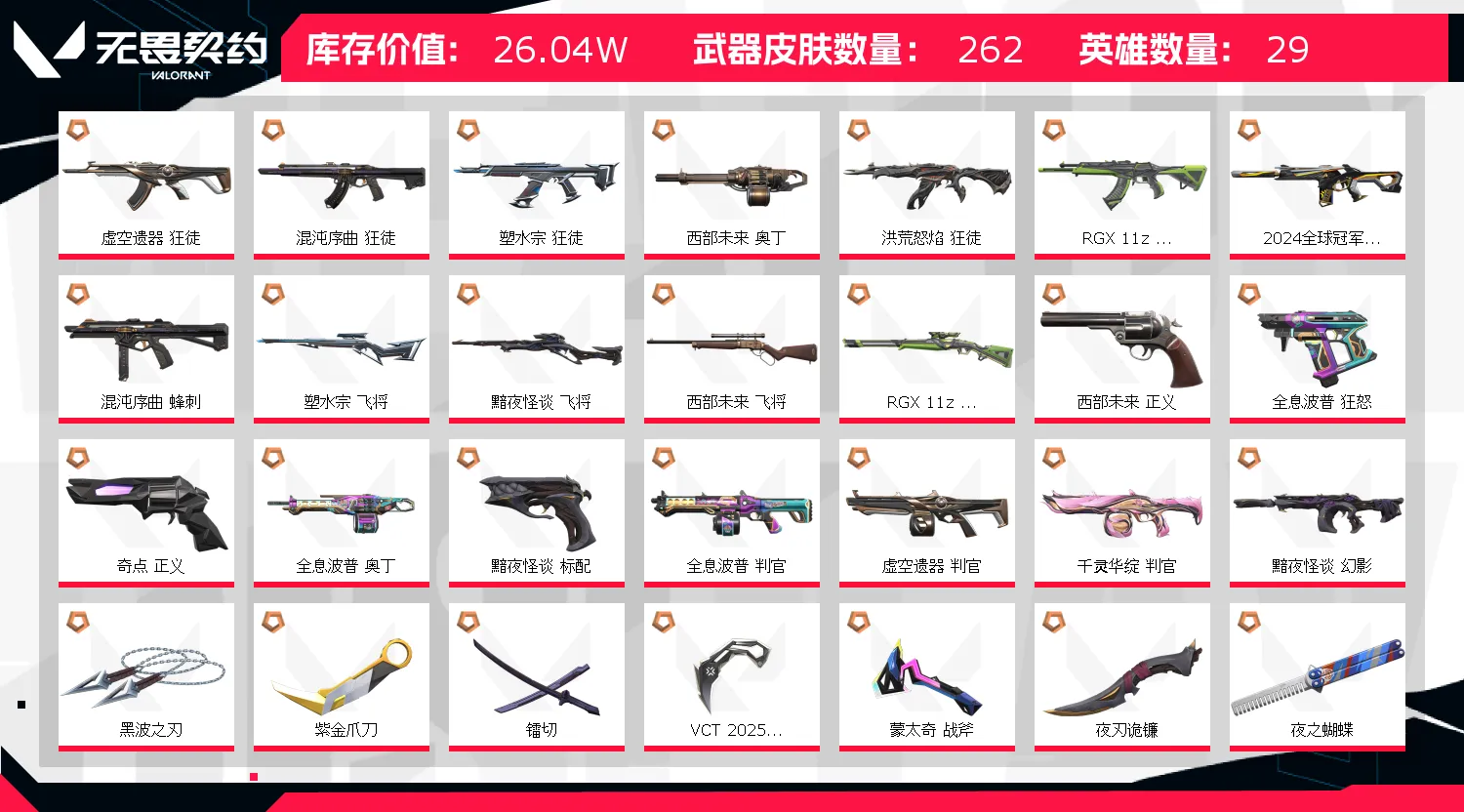 【当前段位:黄金II】🈲炸鱼挂机🔥26w库存24套装⚡颗秒套⚡猫猫套⚡影碟⚡25爪刀⚡24冠军套⚡奇点全套⚡黯夜怪谈套