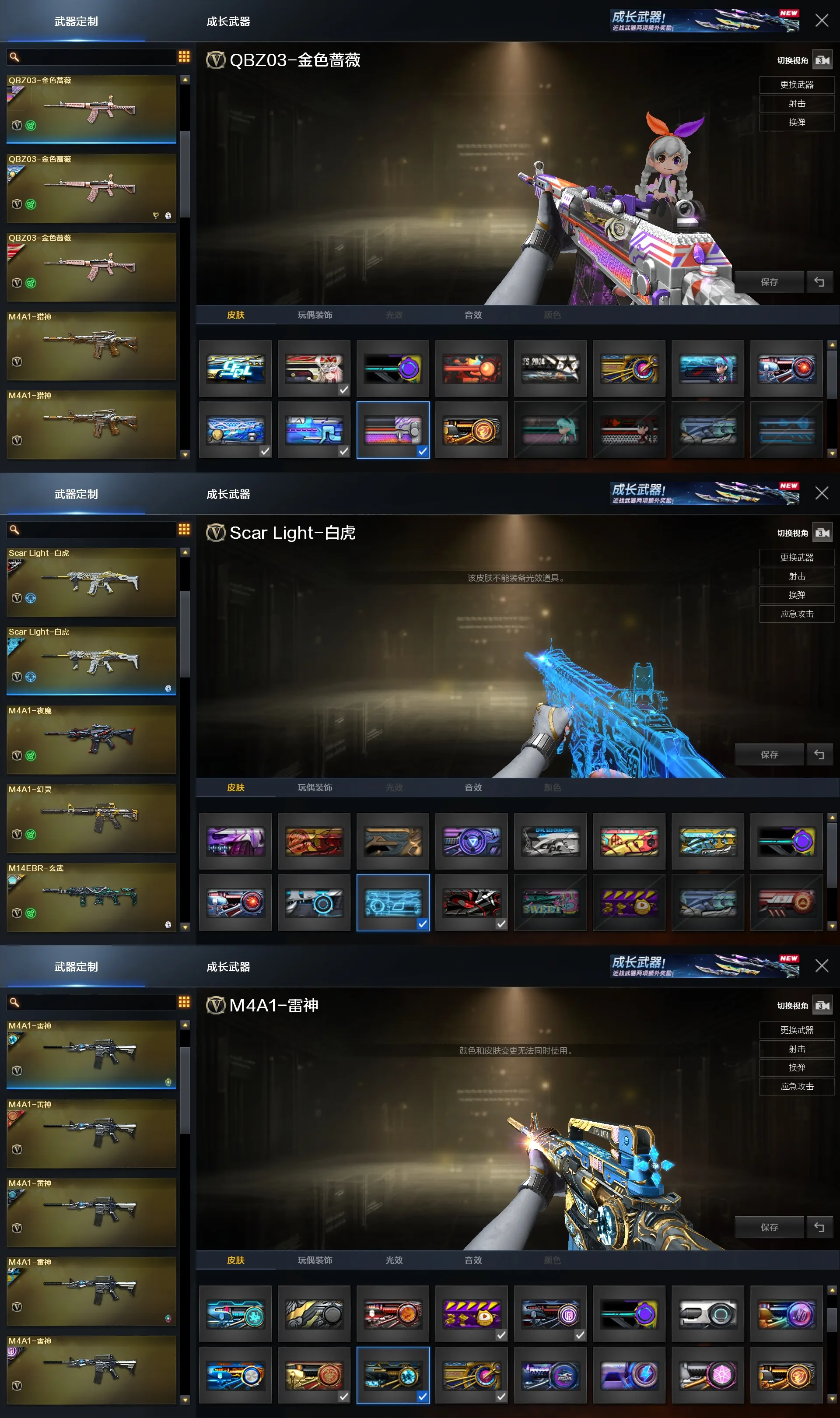 QBZ03-虎鱼,QBZ03-金色蔷薇-斗鱼、QBZ03-冠军之薇、QBZ03-荣耀世冠EP、QBZ03-荣耀世冠白鲨、QBZ03-金色蔷薇-拼搏、QBZ03-CFS2024、QBZ03-巅峰荣耀、金色蔷薇-枪娘阿敏、金色蔷薇-Heartshot、金色蔷薇-纸灯龙、金色蔷薇-电竞之星