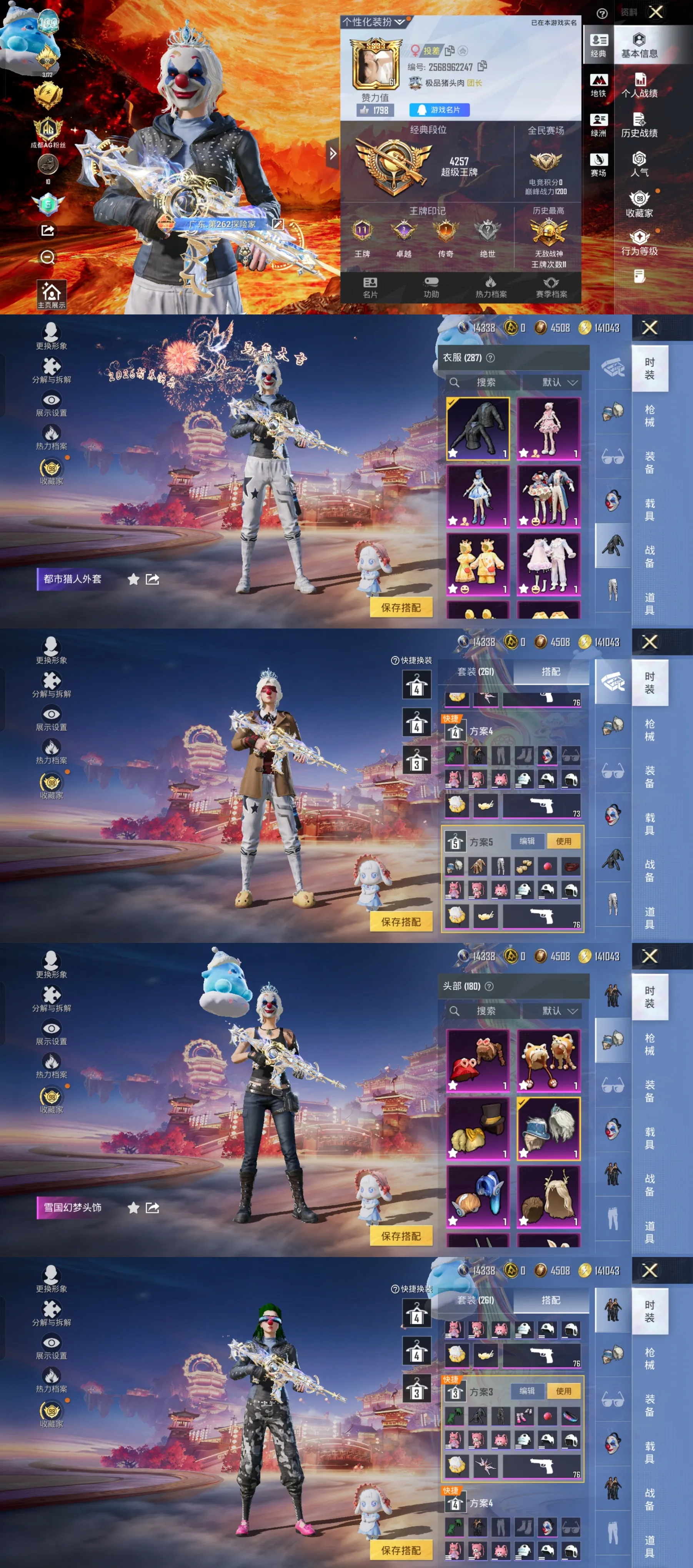 超级王牌51粉,10载具,261套装,11王牌印记,无敌战神历史最高段,146802热力值 平底锅-喜羊羊与灰太狼/平底锅-仲夏莫吉托/撬棍-永恒法杖/Vector-绯穹魔姬/镰刀-幽影之判/M416-灵猫魔法师/蜜獾-荧海星豚/AUG-星梦奇缘/AUG-圣斗士星矢/AKM-炫紫旋律/AUG-暖羊咩咩/AKM-幻海仙踪/SCAR-L-魔童闹海 哪吒/蜜獾-异瞳寒姬/GROZA-无垠阁/MK12-雪月幻音/Mk14-甜梦熊击/Mk14-福马献瑞/MG3-辉羽雀灵/MG-36-幻彩电音/PKM-江南烟雨/MG-36-沧焰双生/DP-28-豹影疾电/野牛-绯月迷踪/AKS-74U-星穹咏叹调/P90-冷漠罗丽/汤姆逊-热量炸弹/Vector-最终圣卫者/UMP45-雪国精灵/P90-魔童闹海 敖丙/JS9-奇迹舞步/破片手榴弹-瓶中星球/烟雾弹-甜梦果泡/Kar98K-圣域龙灵/Kar98K-巳巳如意/俏皮小熊猫/虚妄之影(炫耀紫)/合金龙骨(蓝)/冰绡玉鳞/星梦玉骢/黑曜夜骑/晶梦灵驹/辉羽雀灵自行车/最终圣卫者摩托车/踏焰逐风摩托车/