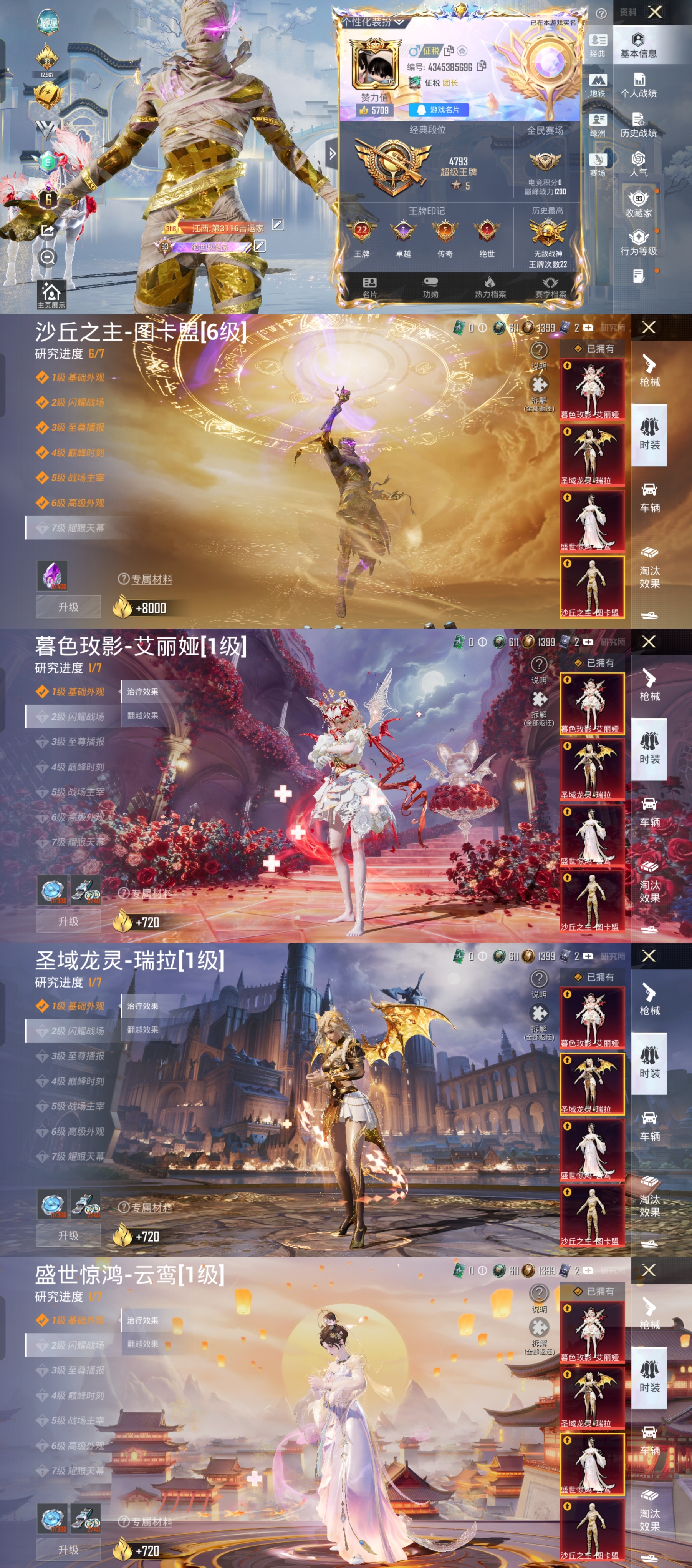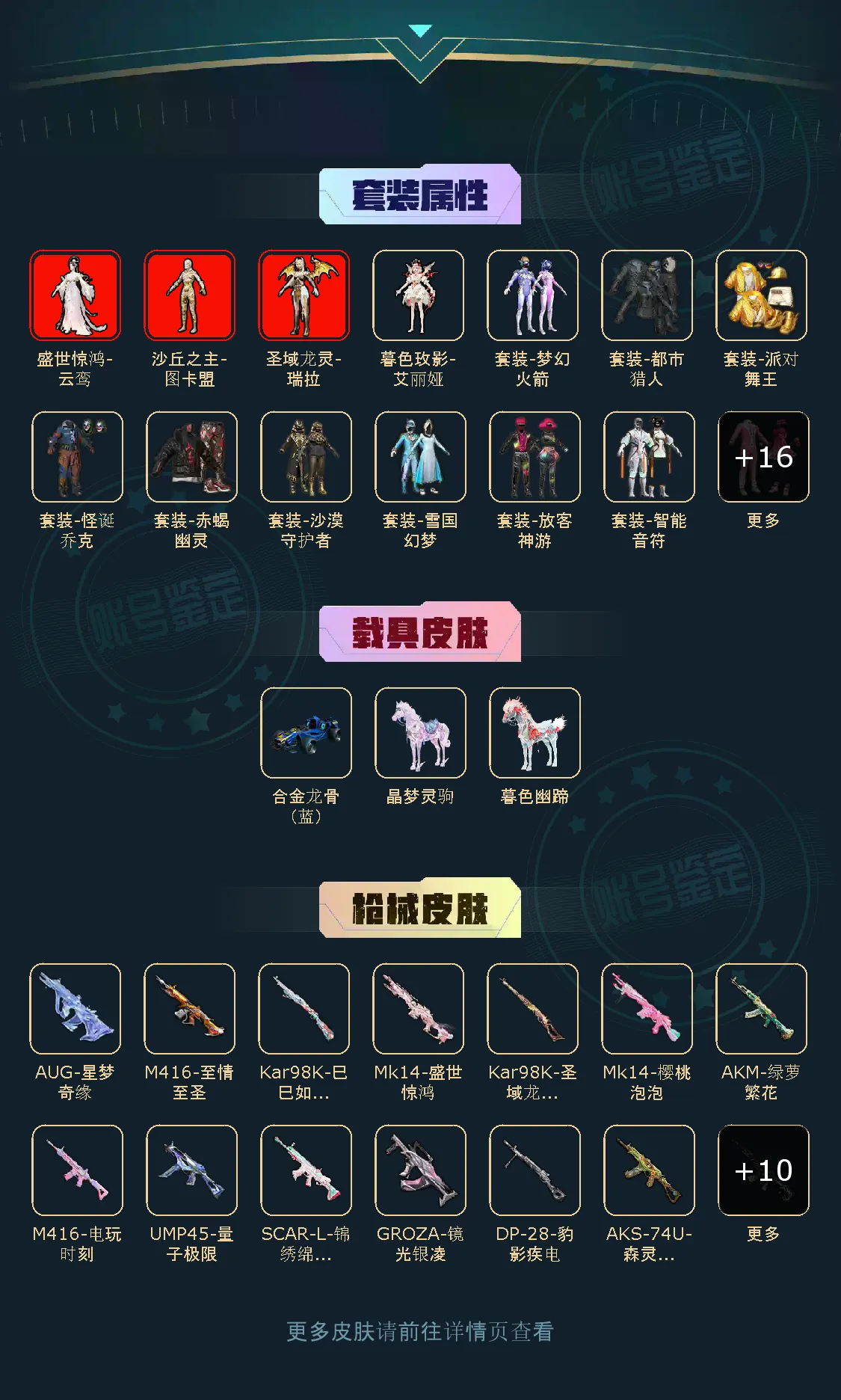超级王牌5星25粉,3载具,254套装,22王牌印记,无敌战神历史最高段,152484热力值 信号枪-金乌曜日/AUG-星梦奇缘/AKM-绿萝繁花/M416-电玩时刻/M762-鬼刀/M416-五爪金龙/M416-墨龙九天/SCAR-L-锦绣绵绵/M416-至情至圣/GROZA-镜光银凌/AUG-超新星/AKM-暮色玫影/AA12-G-萌骑幻想/Mk14-盛世惊鸿/Mk14-樱桃泡泡/Mk14-福马献瑞/DP-28-豹影疾电/UMP45-量子极限/AKS-74U-森灵之息/破片手榴弹-热量炸弹/燃烧瓶-薄荷可可/Kar98K-圣域龙灵/Kar98K-巳巳如意/合金龙骨(蓝)/暮色幽蹄/晶梦灵驹/