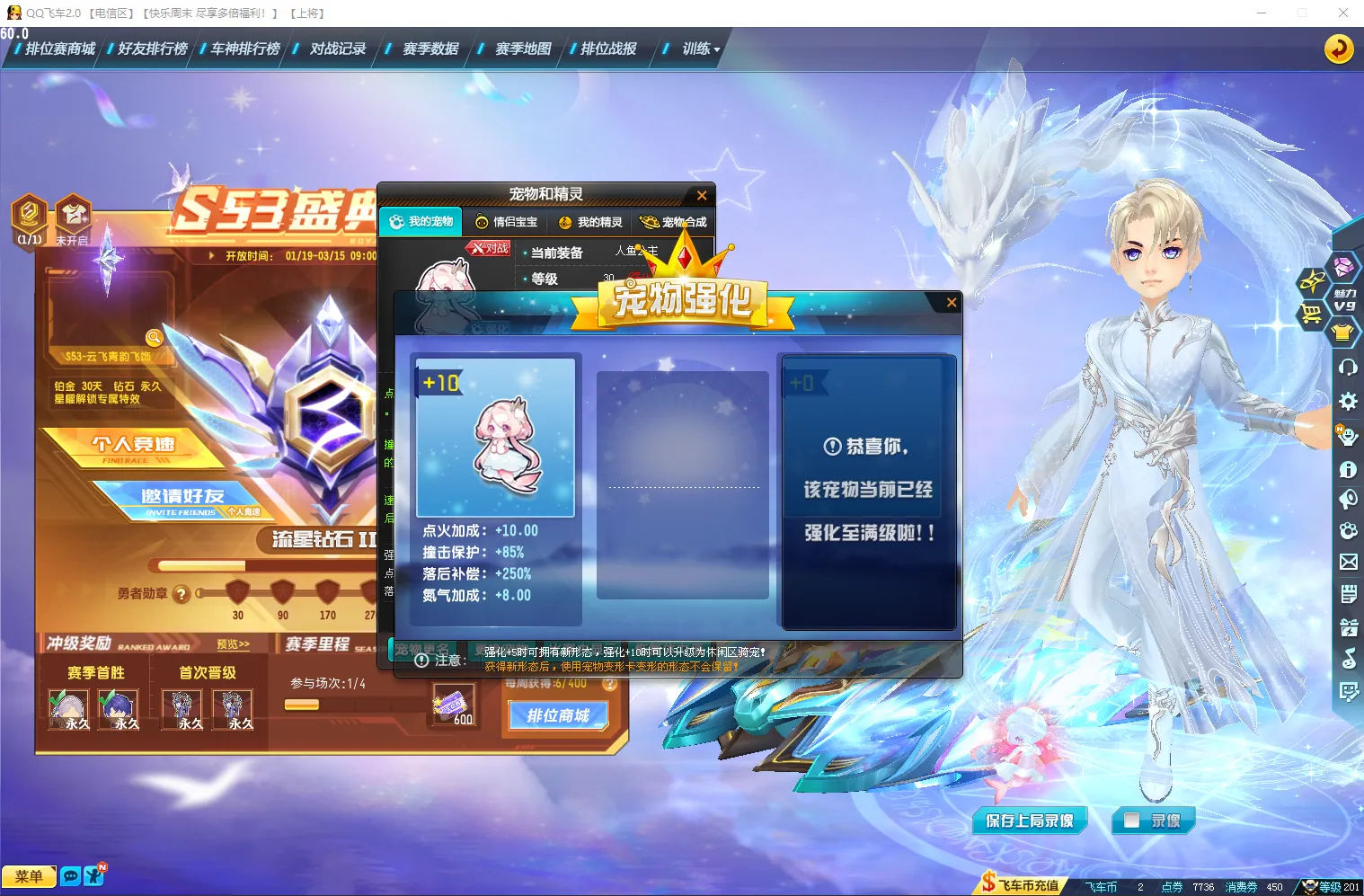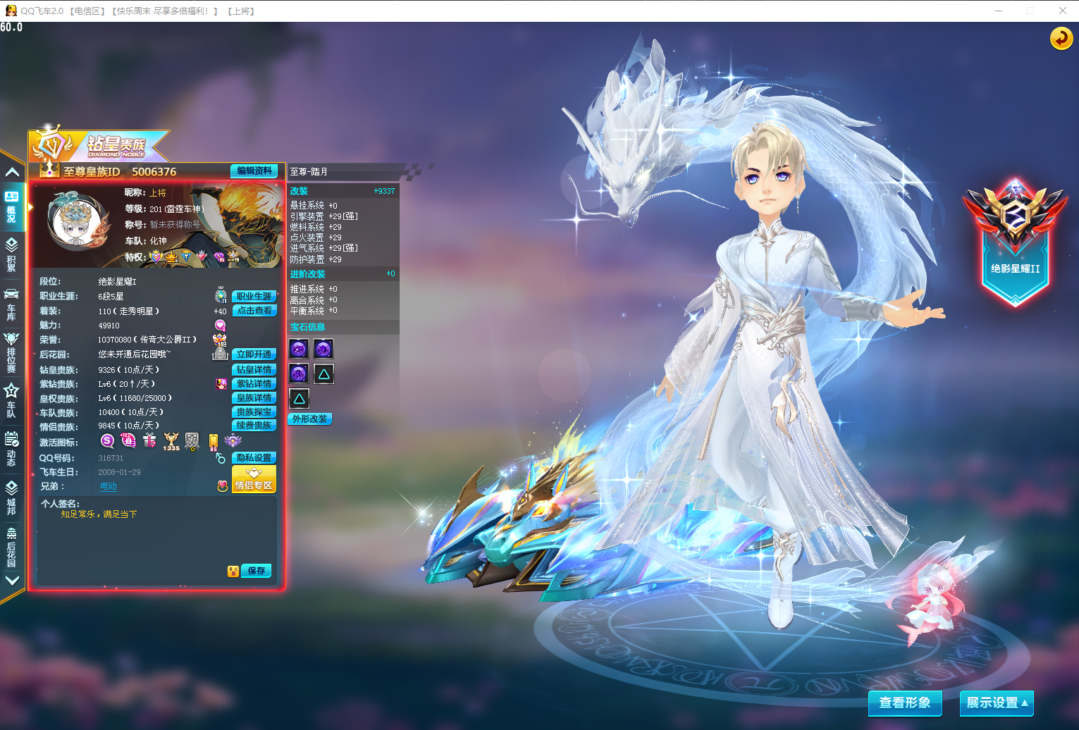 最新马年年限至尊逐日-踏月,5项全29三竞速宝石,红人号,拉风的ID:上将,最帅男装悬浮云镜龙缘,女悬浮云茸茸。竞速宠:人鱼公主,幻海之莹,齐天大圣全部强化10。