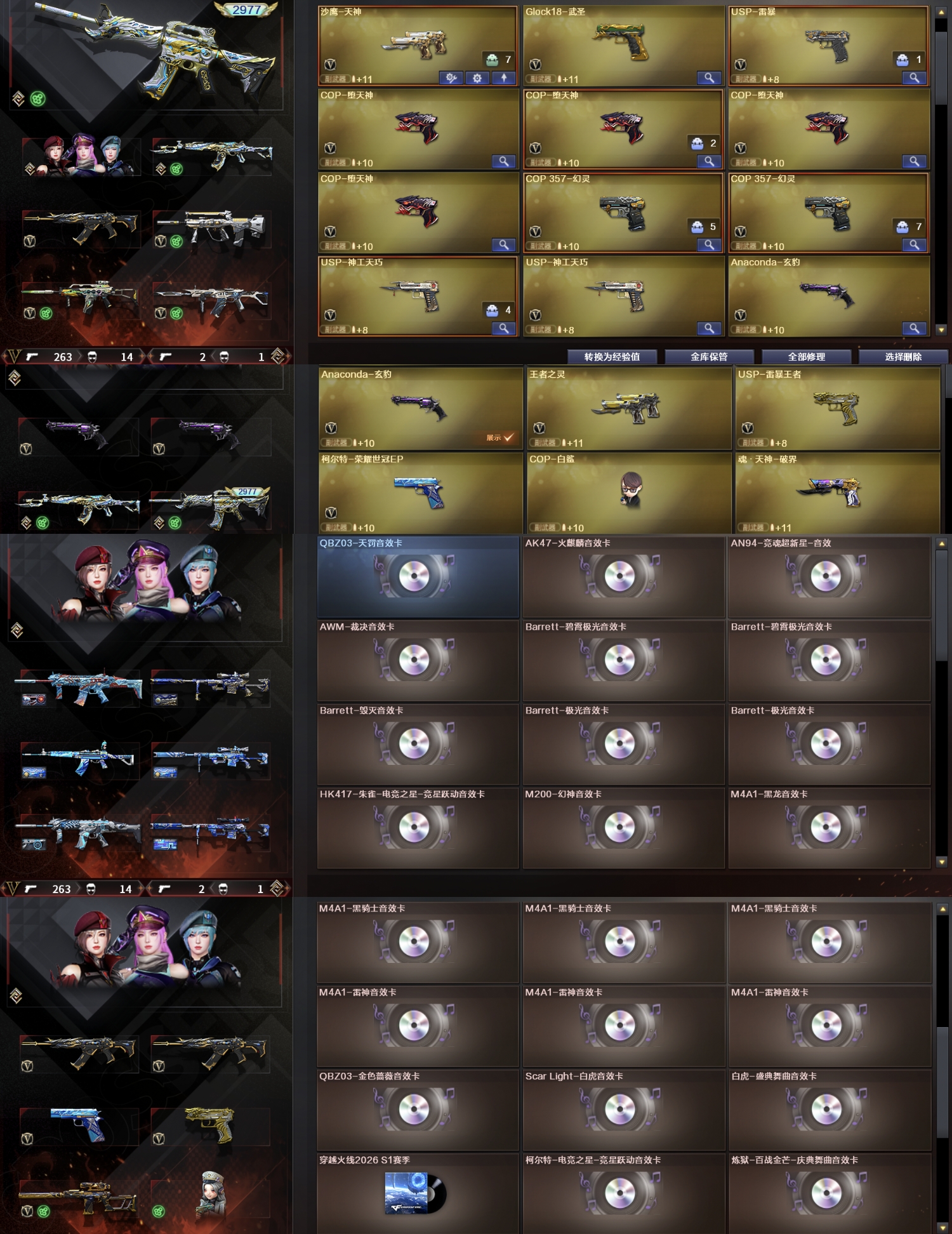 传说星骇,传说圣谕,传说光耀序列号2977,幻神3皮(EP KZ 电竞之星)三件套,白虎拼搏量子三件套,QBZEP三件套,裁决5皮三件套,极光三件套,王者雷暴
