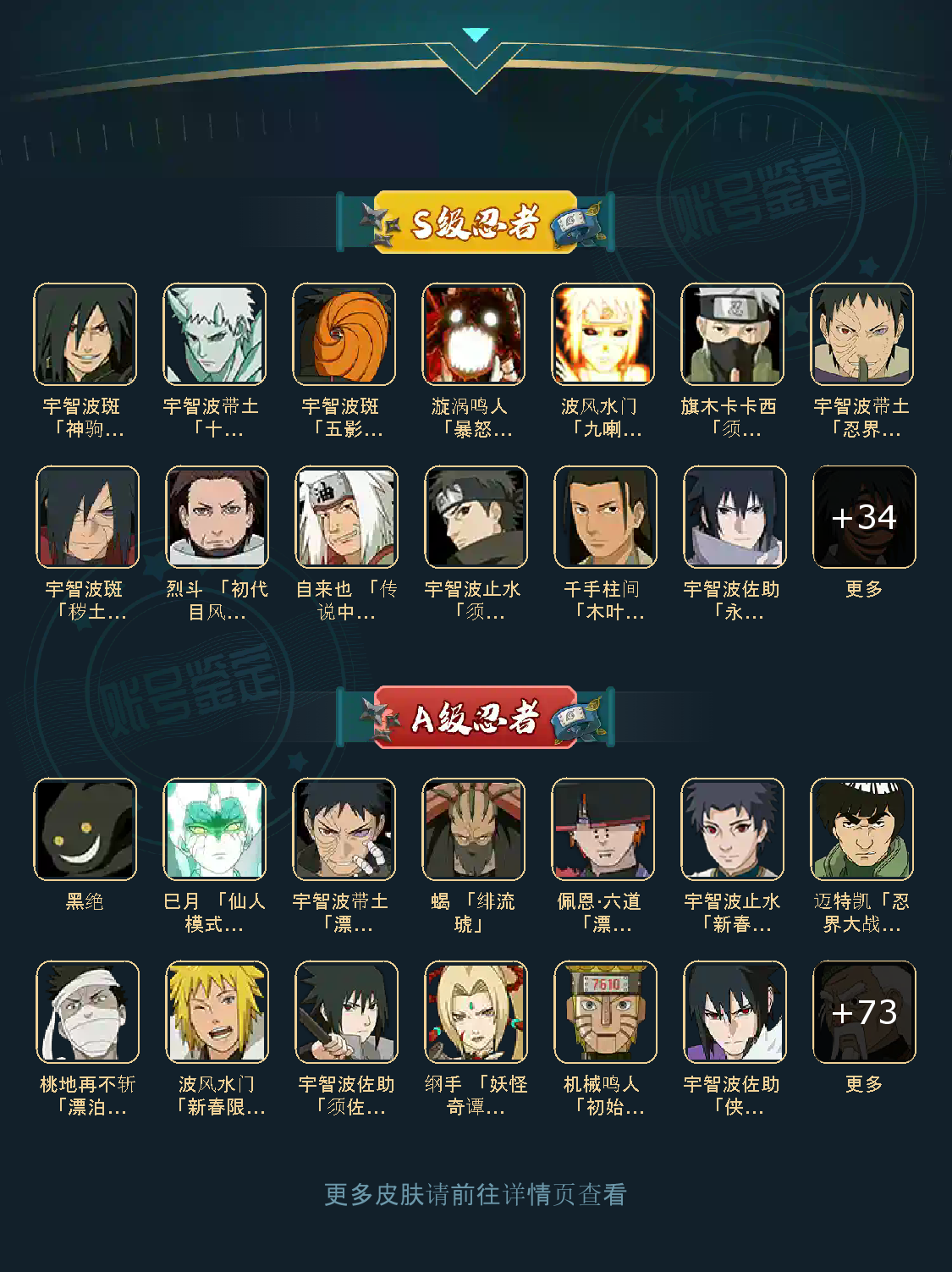 47S 86A 381忍者 宇智波止水「新春限定」/桃地再不斩「漂泊武士」/蝎 「绯流琥」/黑绝/佩恩·六道 「漂泊浪客」/波风水门「新春限定」/巳月 「仙人模式」/宇智波带土 「漂泊浪客」/迈特凯「忍界大战」/烈斗 「初代目风影」/神秘面具男 「红夜之刃」/宇智波斑 「秽土转生·解」/自来也 「传说中的三忍」/宇智波带土 「十尾人柱力」/波风水门「秽土转生」/千手柱间 「木叶创立」/宇智波止水 「须佐能乎」/漩涡鸣人 「九喇嘛连结」/漩涡鸣人 「暴怒·第六尾」/宇智波斑 「五影会谈」/宇智波斑「白面具」/宇智波斑 「神驹佑将」/宇智波带土「忍界大战」/宇智波佐助 「永恒万花筒」/佩恩·天道「超」/旗木卡卡西 「须佐能乎」/波风水门 「九喇嘛连结」