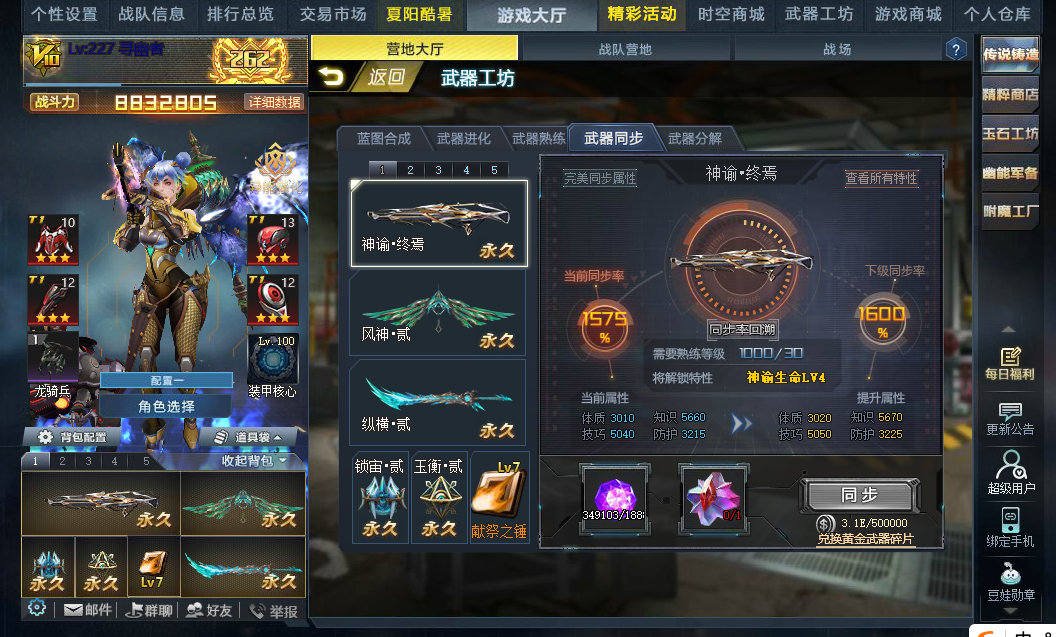 神谕1575,风神1700,纵横1800,锁宙1675,玉衡1575,墨韵1200,天枢1225,次元2000带10级强化,裁决2000,暗水晶2050,藤木1725,绝境1725,核子1725,迷你派拉900