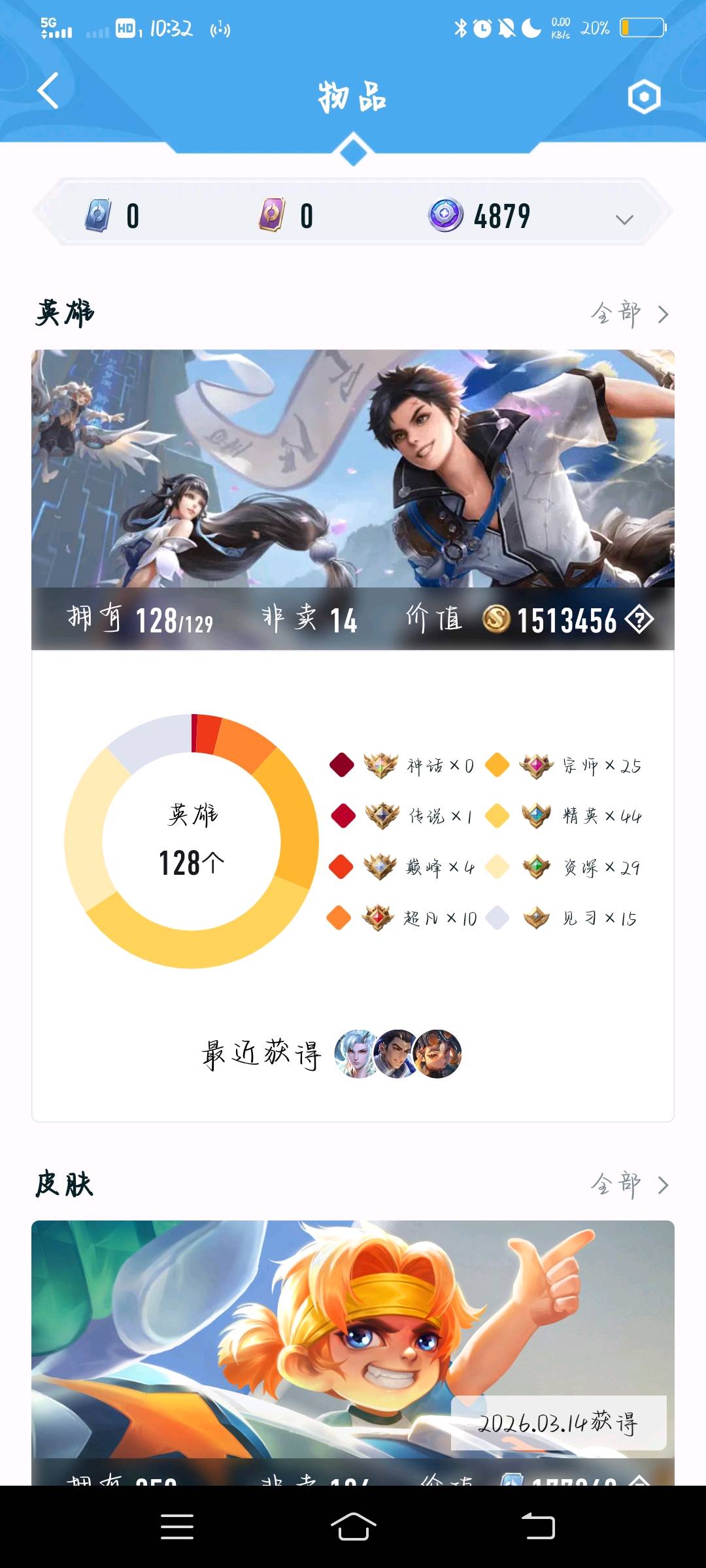 英雄池深厚:接近全英雄,非卖英雄14个,收藏价值高
