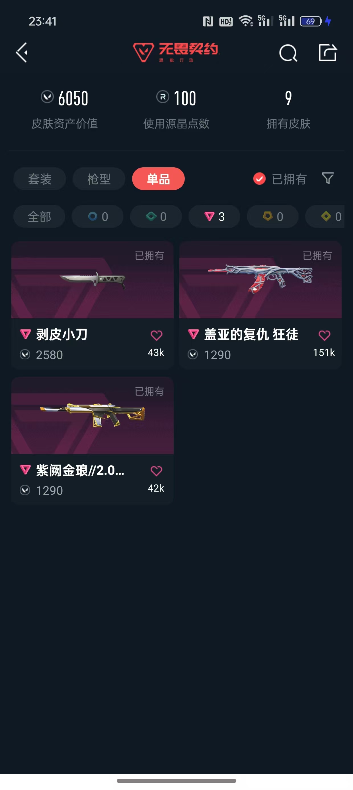 - 皮肤资产价值: 0.69 W