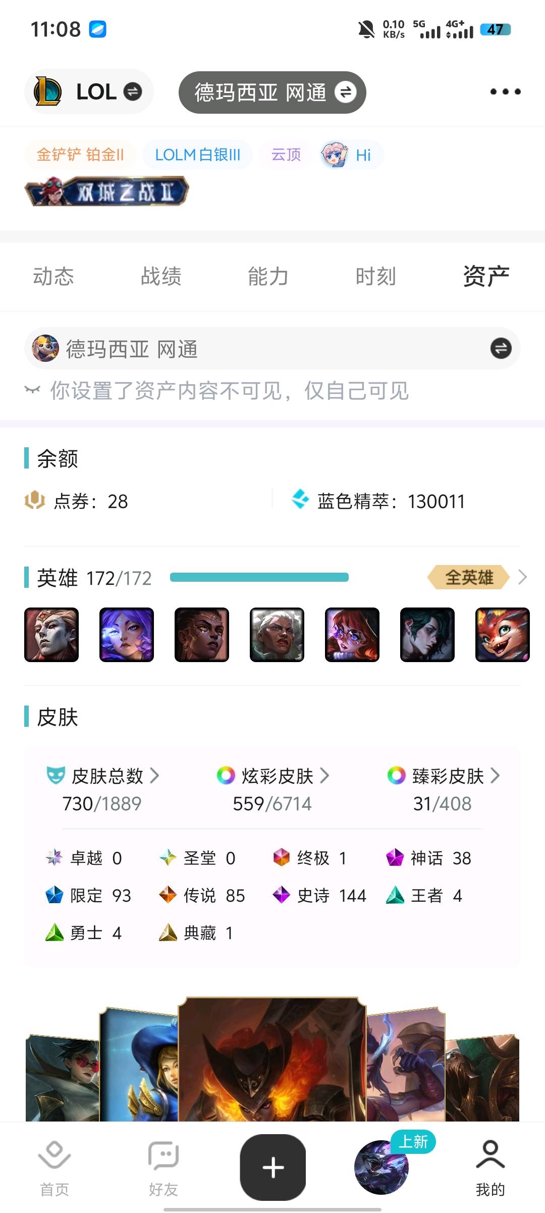 - 云顶段位: 荣耀黄金Ⅱ